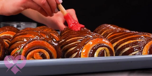 Всі дивуються моїм булочкам. Булочки «Зебра» - просто чарівні, м'які як пух, ніжні і шоколадні! Двоколірні домашні булочки з шоколадною начинкою змащені ванільним цукровим сиропом, виходять м'якими, повітряними, ароматні, смачні і дуже красиві. Невагомі в руках і просто тануть у роті, спробуйте приготувати!