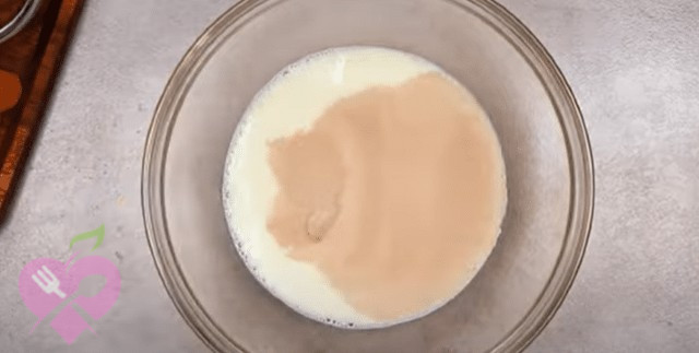 Почнемо з того, що змішаємо молоко, цукор і дріжджі.