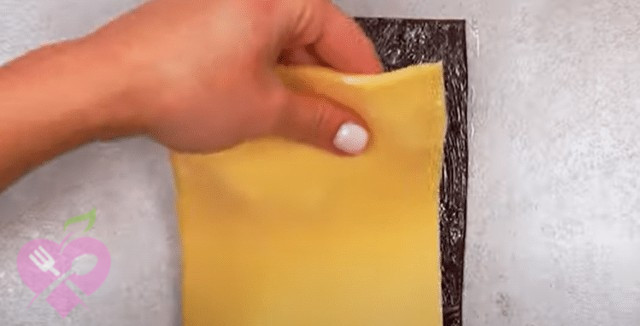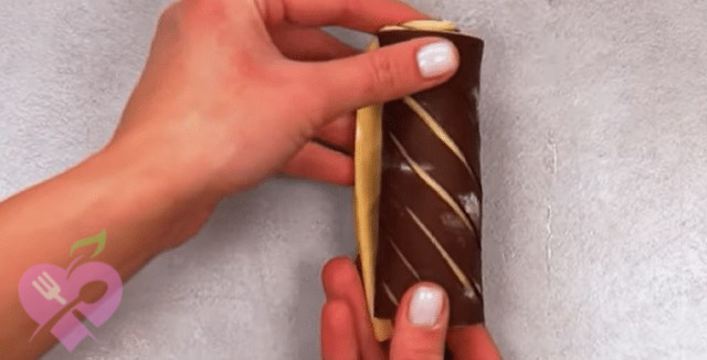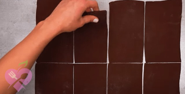 Прямокутник зі звичайного тіста покладемо на шоколадний прямокутник.