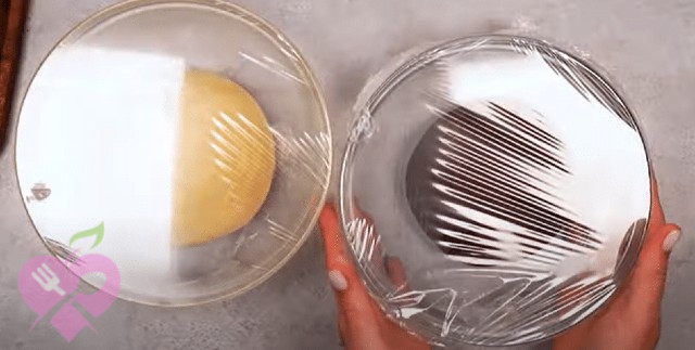Звичайне тісто і какаове тісто залишаємо на 60 хвилин під харчовою плівкою.