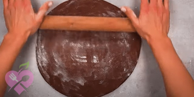 Після закінчення часу розкачайте какаове тісто на присипаному борошном качалку.