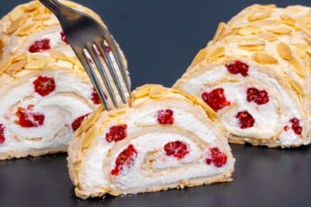 Спіральний торт медівник “Снігур” з журавлиною начинкою і сирним кремом