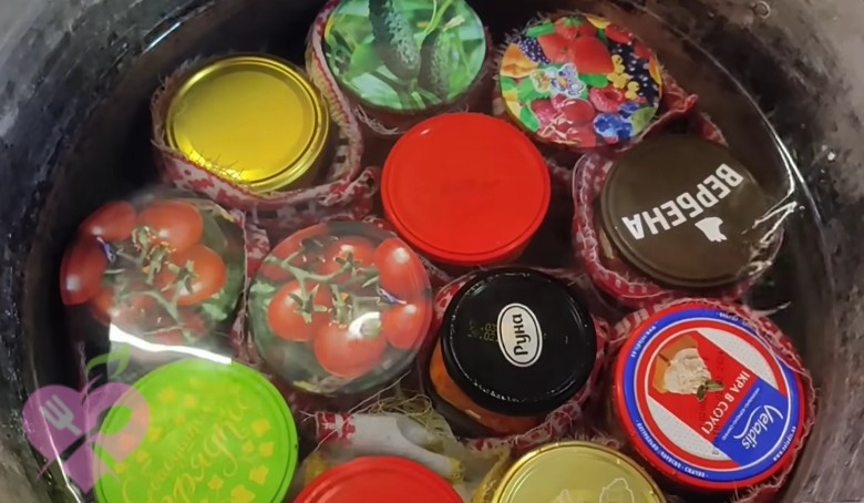 Якщо автоклава у вас немає, то можна поставити у велику кастрюлю, закрутити банки кришками, але не кінця. На дно постелити тонке полотенце, залити водою на 3 пальці вище банок. Варити на малому вогні 6 годин, доливаючи гарячу воду при потребі.