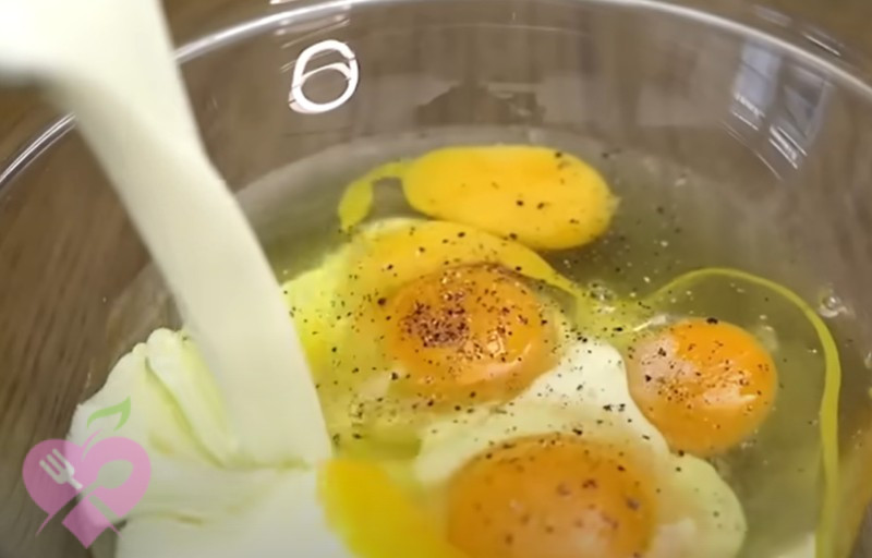 Змішаємо яйця, сіль, перець, борошно і молоко.
